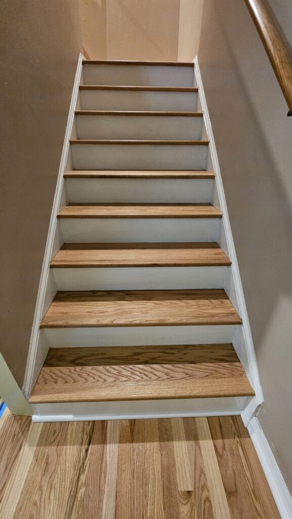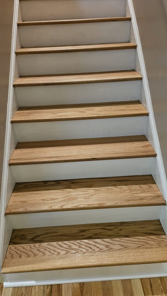 Whether you need to replace carpeted stairs with hardwood, install new wood stair treads, or completely reface an outdated staircase, we provide tailored solutions that match your existing hardwood flooring. We work with solid, prefinished, or unfinished wood treads and are fully trained to install NuStair refacing systems for fast, clean, and professional results.